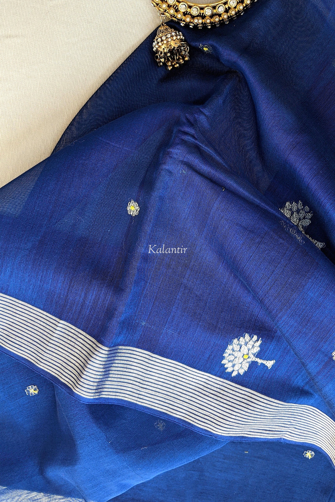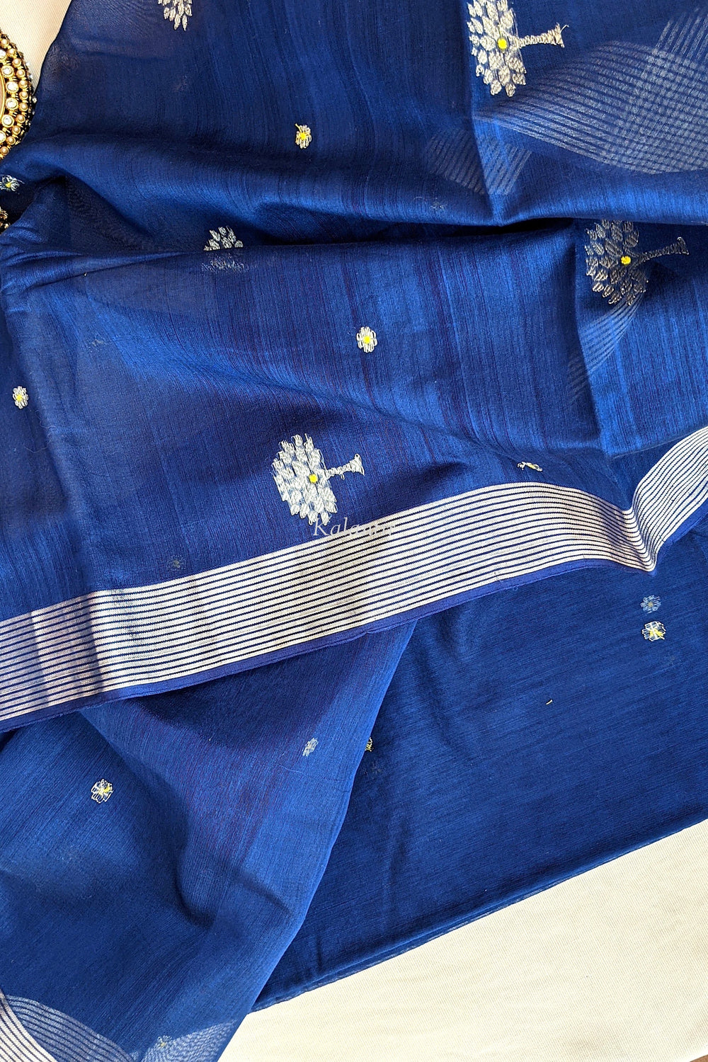 Beautiful Handwoven Deep Blue Silk Cotton Chanderi Saree