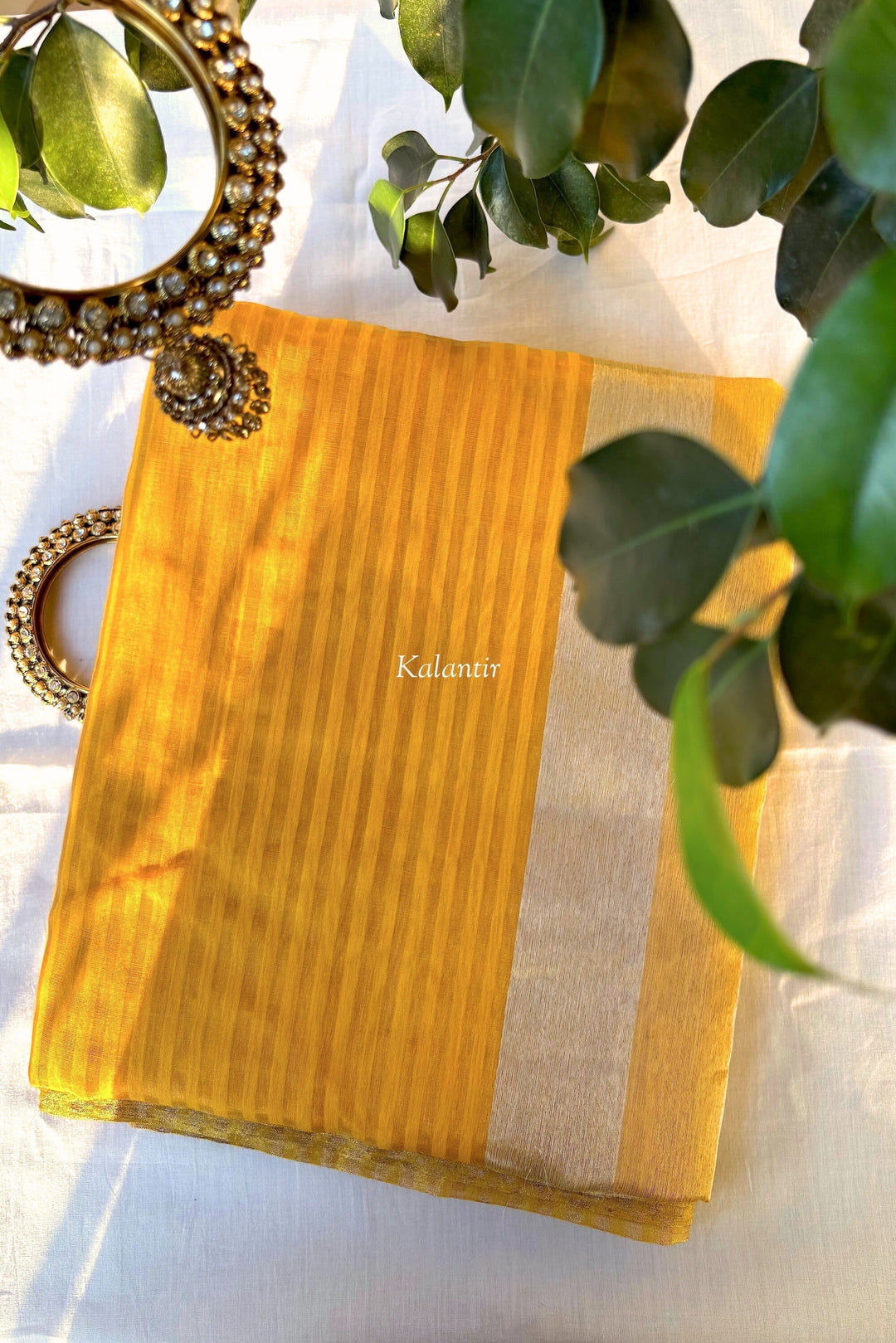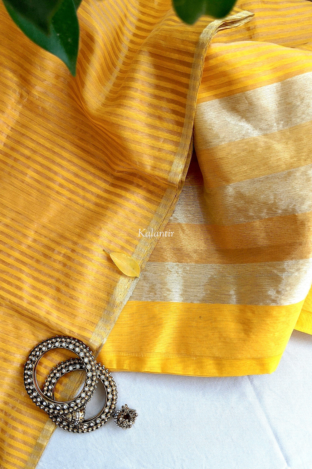 Bright Haldi Yellow Striped Silk Cotton Chanderi Saree
