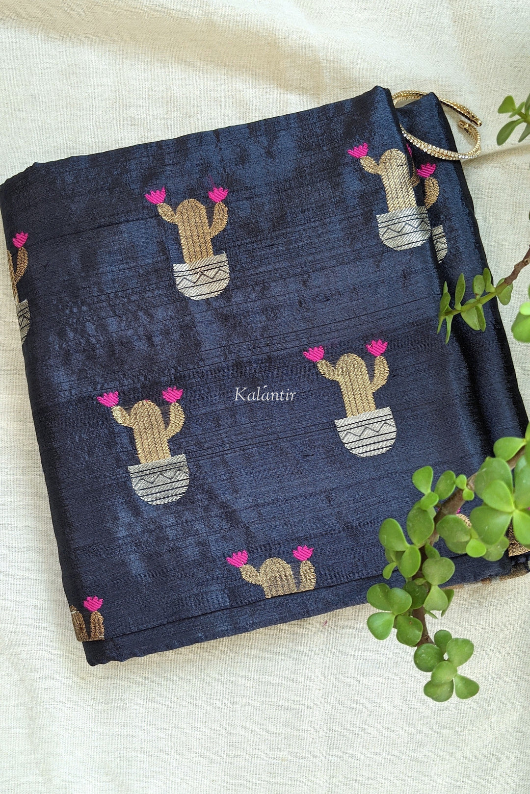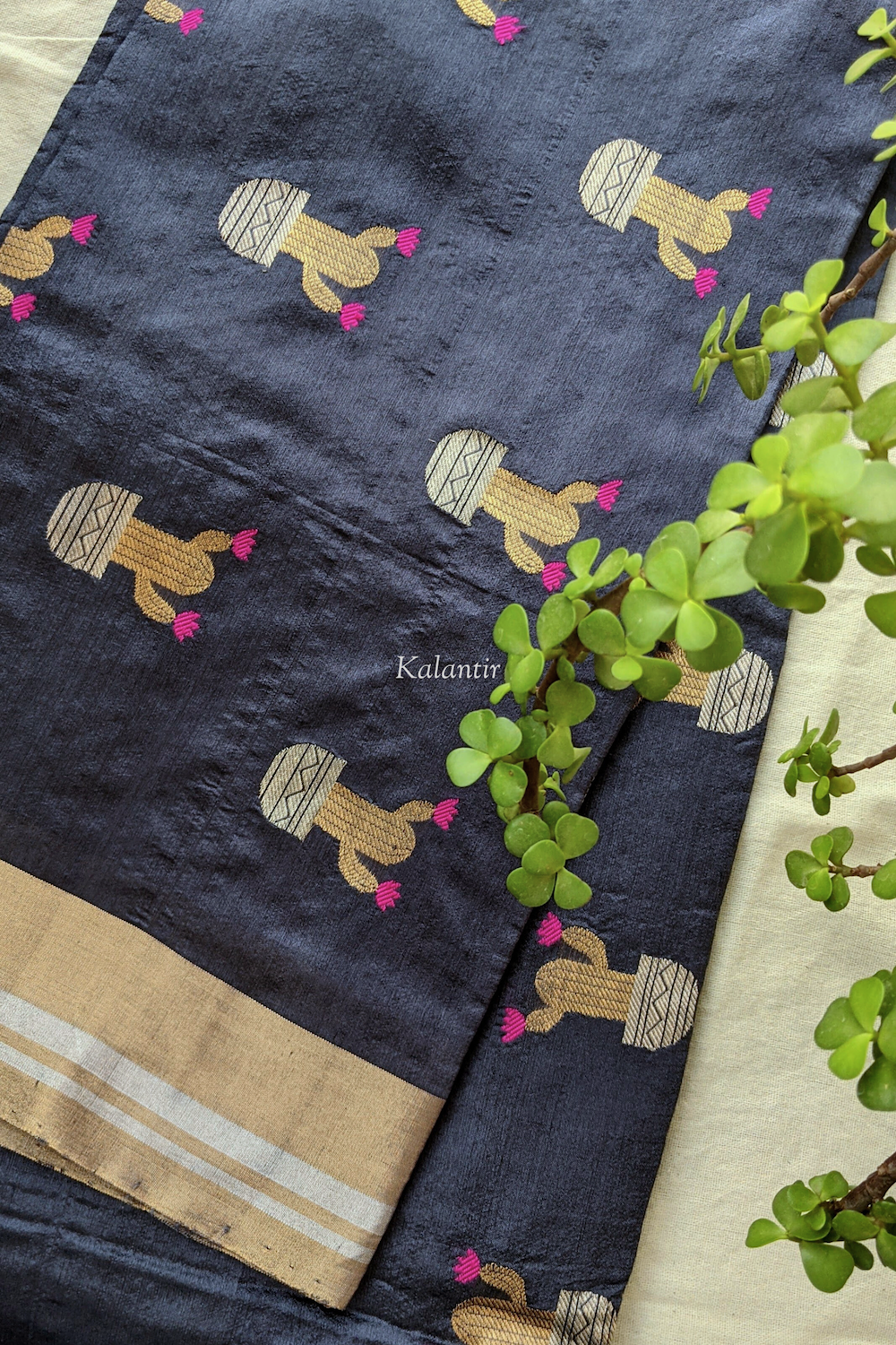 Beautiful Plain Chanderi Silk Saree in Midnight Blue Grey | Lovely Pallu Design