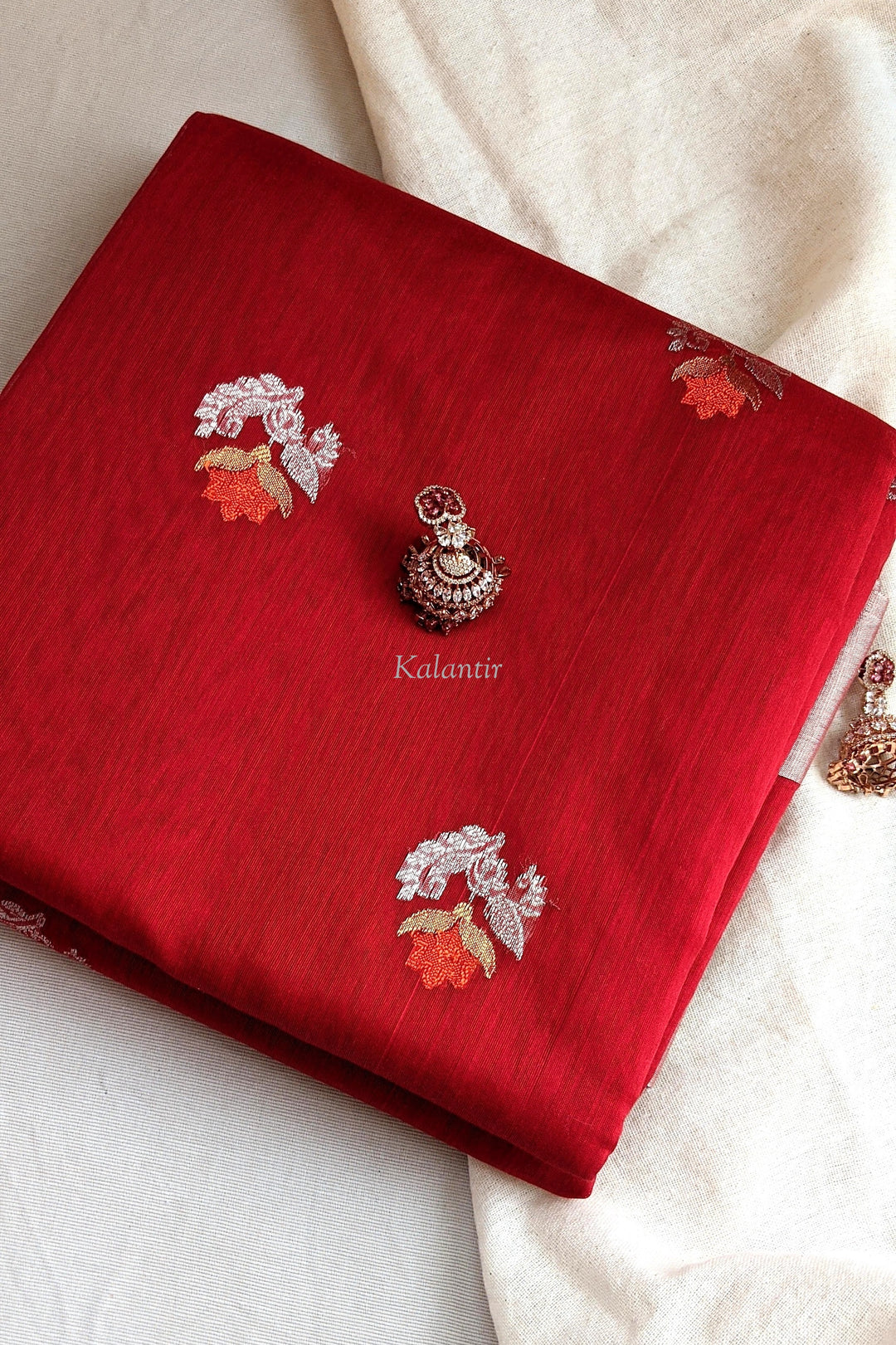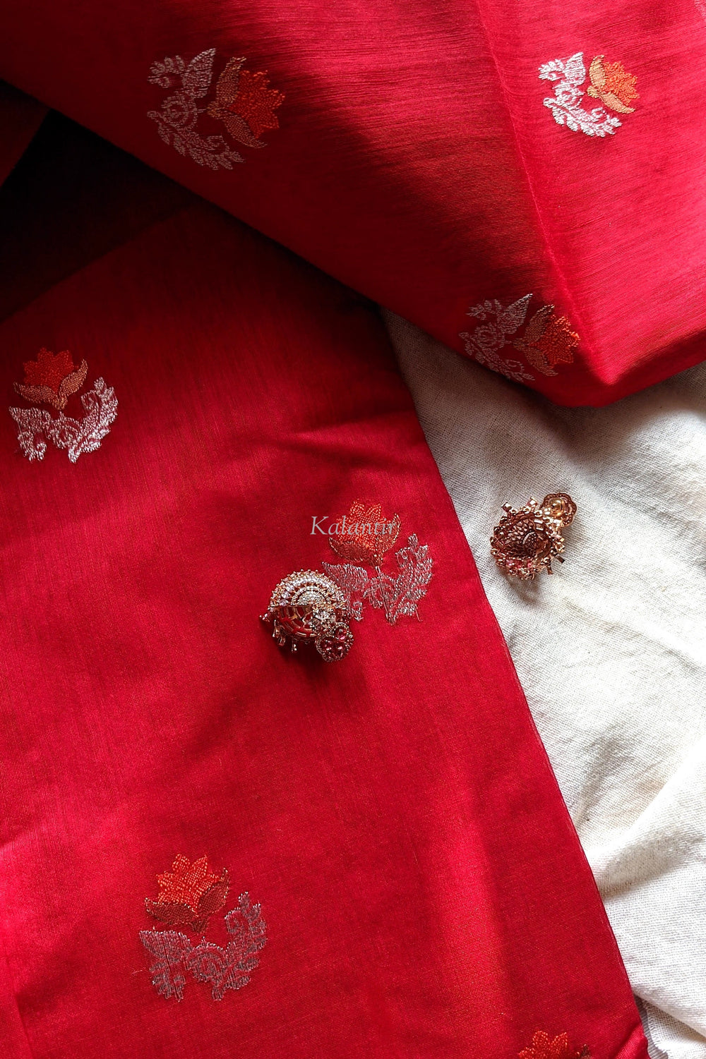 Beautiful Festive Handwoven Silk Cotton Chanderi Saree in Scarlet Red