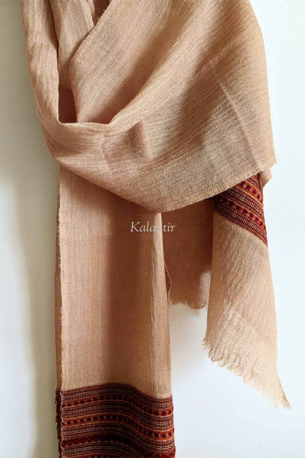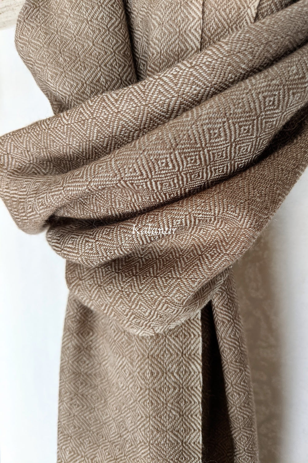 Authentic & Formal Woollen Kullu Scarf in Tan Brown | Original Angora Wool