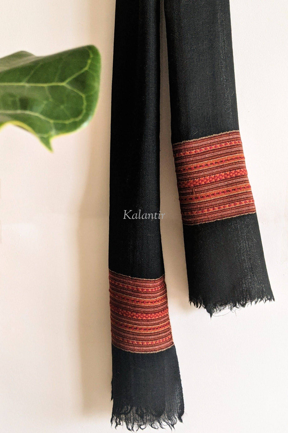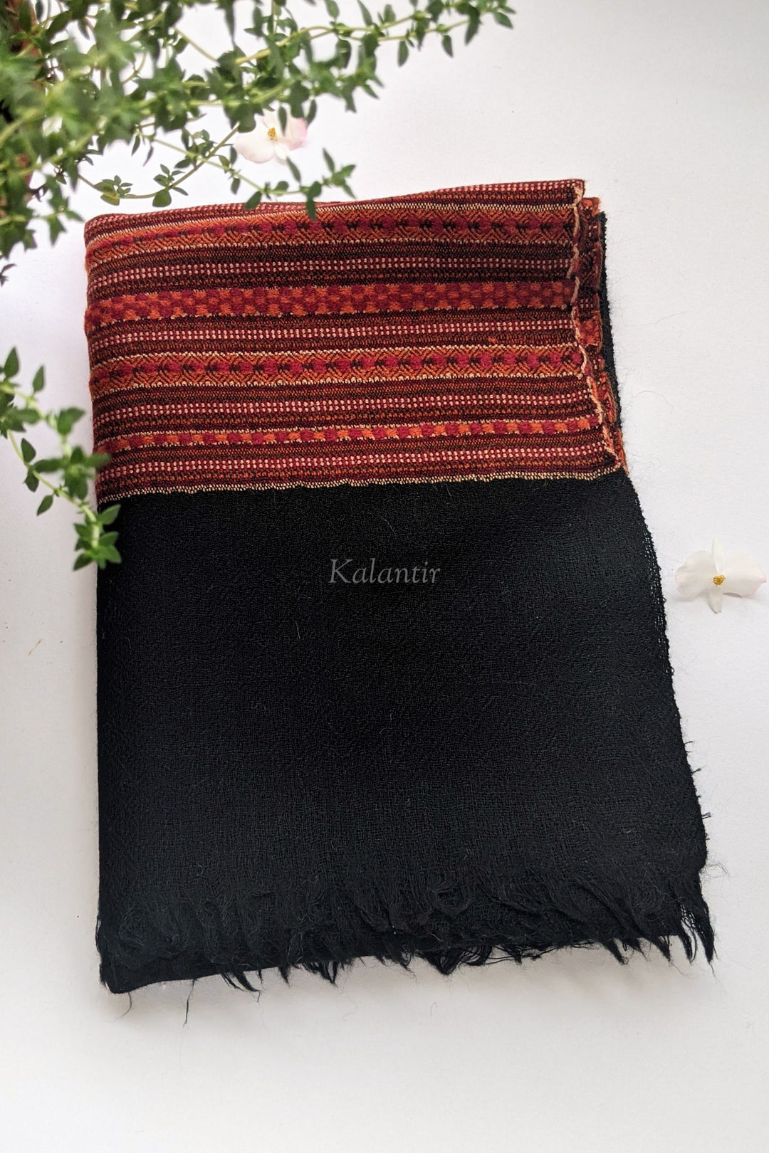 Black Colored Authentic Woollen Kullu Scarf for Men | Pure Sheep & Angora Wool Blend